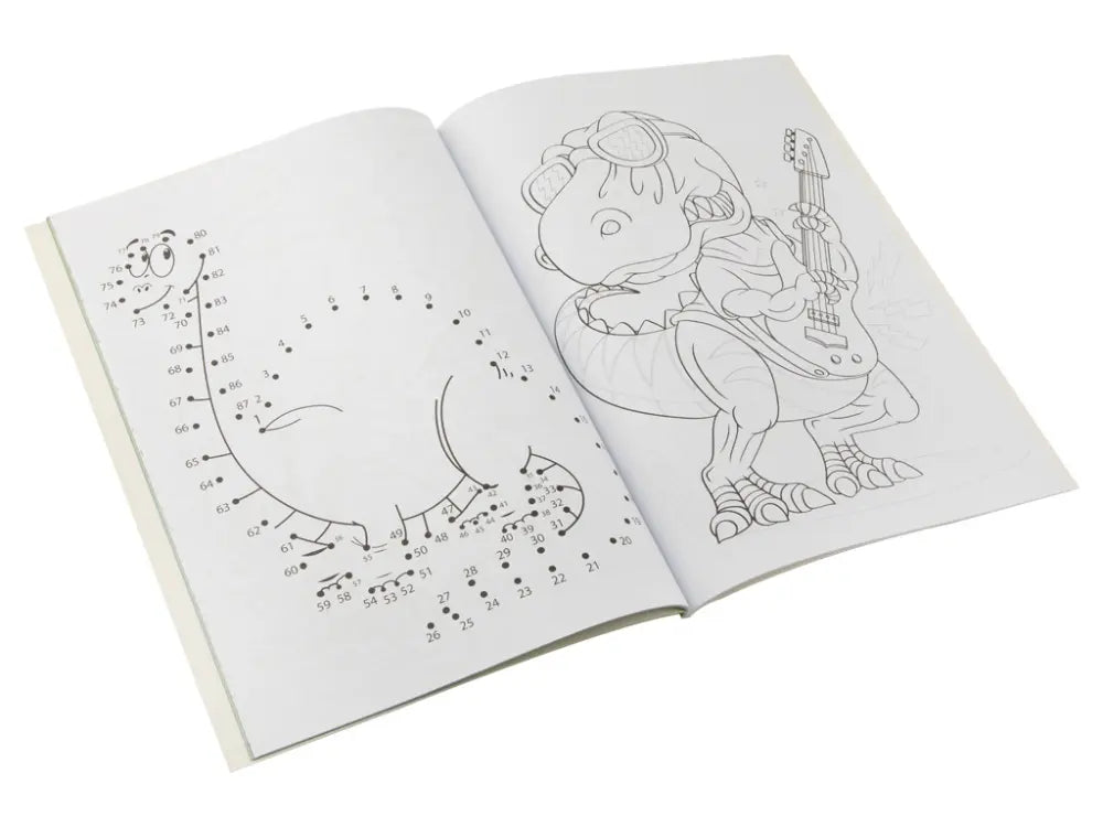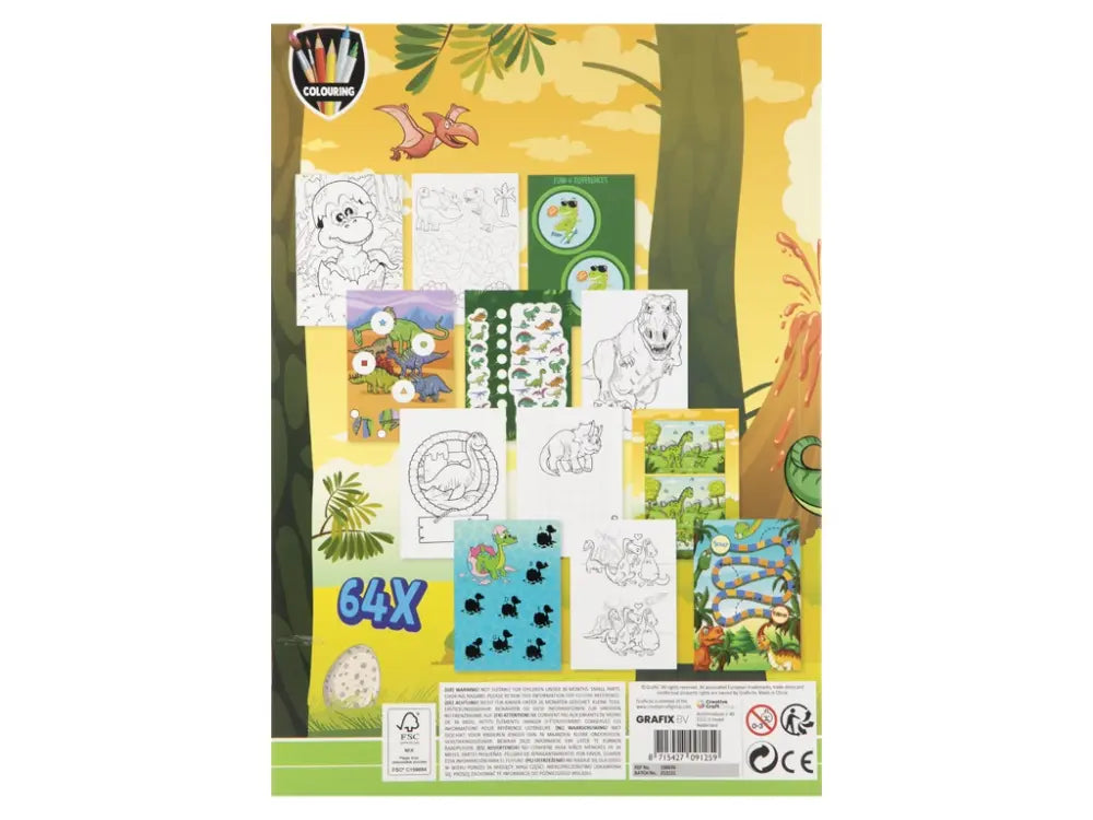 Kreativbog med dinosaurustema. 64 sider til farvelægning eller opgaveløsning.