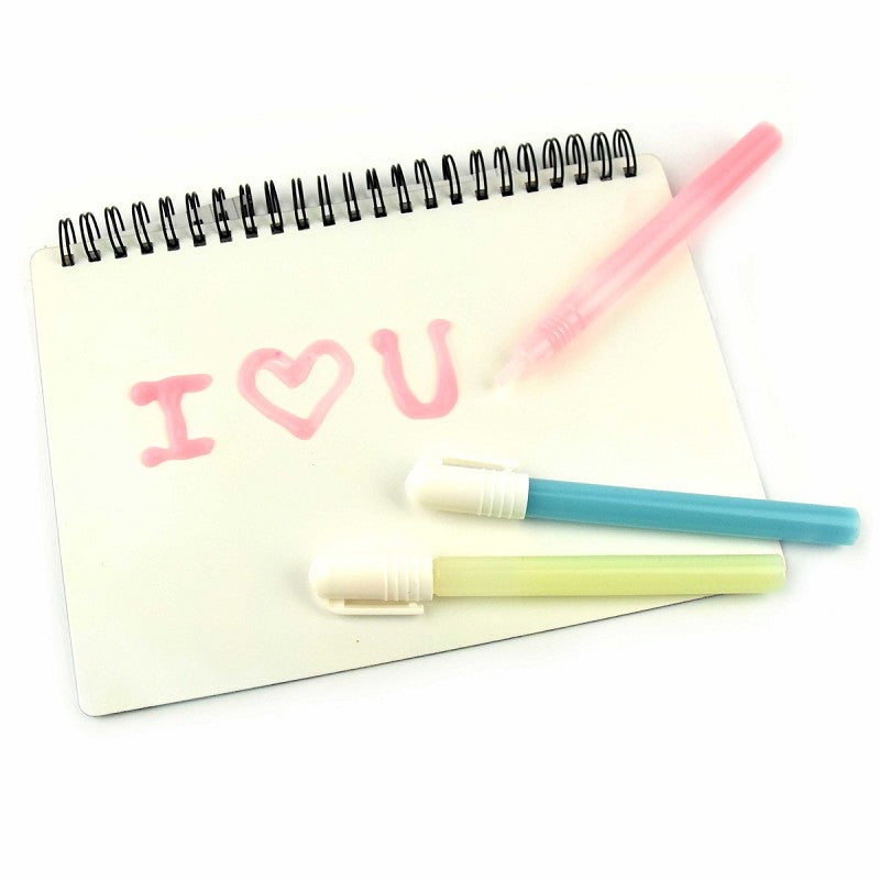 Glow in the dark-penne 3 stk. Mal for eksempel på vægge, gulve, tøj, skoletaske eller sko. Tekst eller billede lyser i mørket.