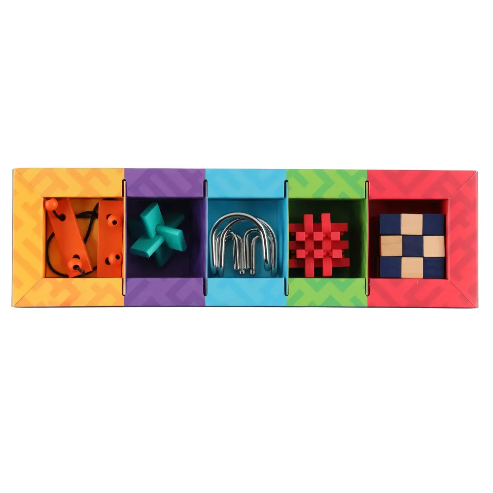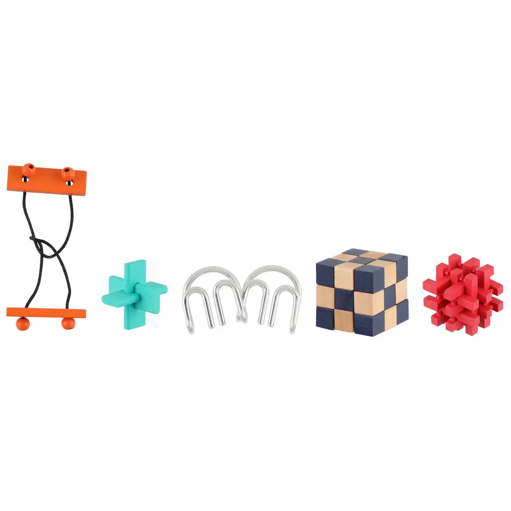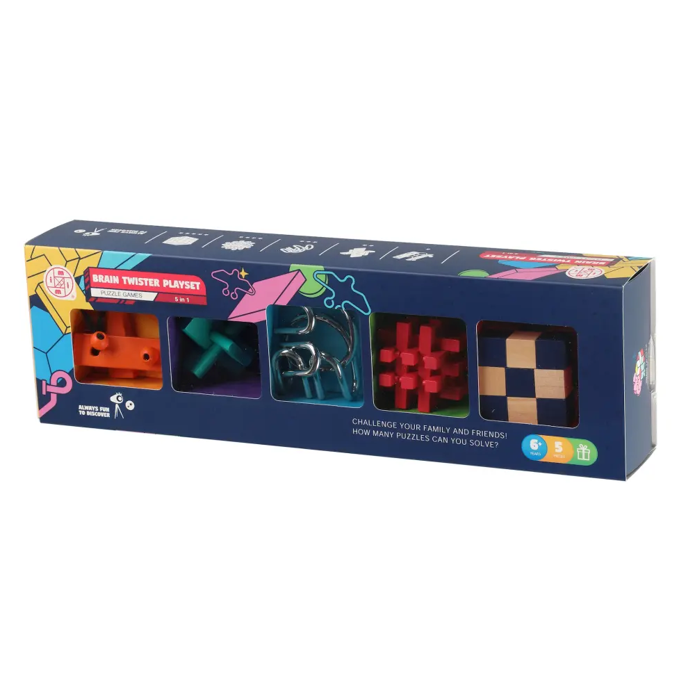 Udfordr dig selv, din familie og dine venner med dette sæt, der indeholder fem puslespil i forskellige sværhedsgrader. En sjov og motiverende måde at træne hjernen, koncentrationen og tålmodigheden på.