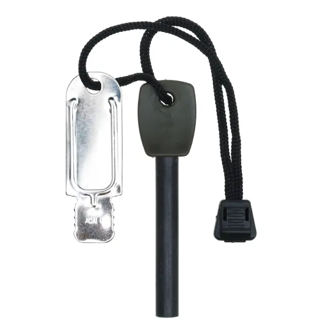 Praktisk tændstål fremstillet af ABS-plast og stål – perfekt til camping, vandreture og andre udendørseventyr. Giver en pålidelig gnist, så du nemt kan tænde bål, selv under fugtige forhold.