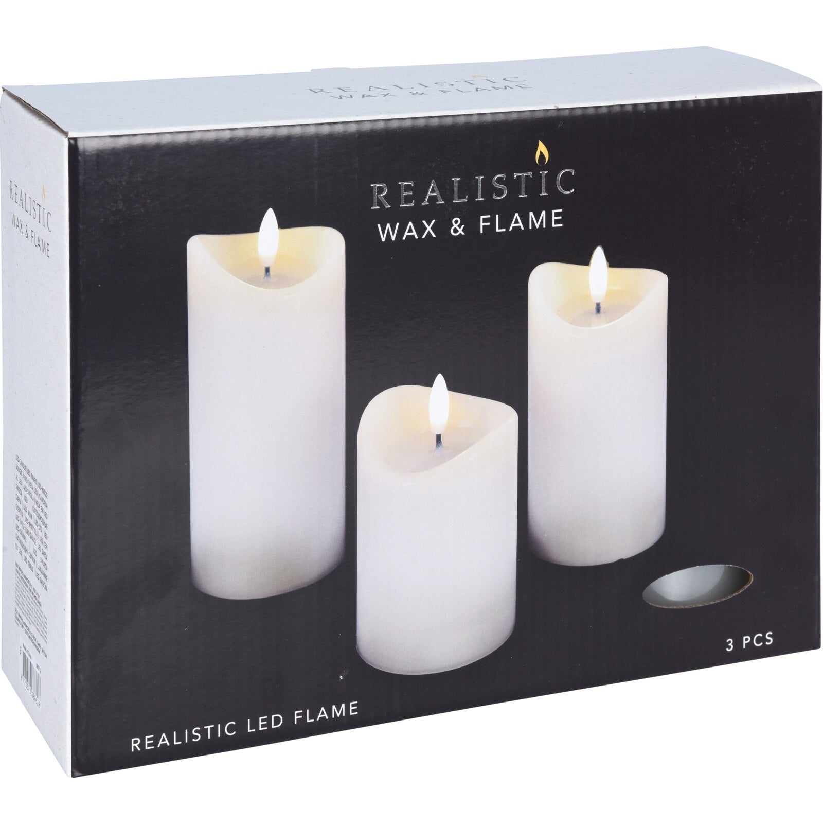 LED bloklys i tre forskellige størrelser med realistisk flakkende flamme.