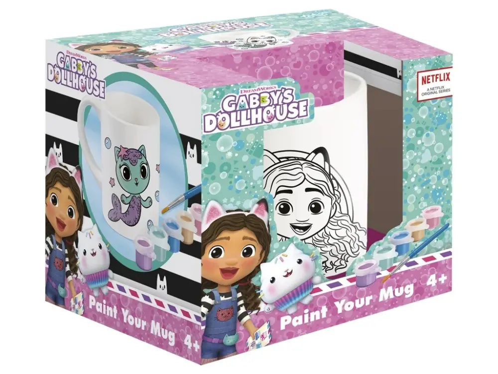 Mal din egen porcelænskop med Gabby’s Dollhouse-tema. Indeholder 5 keramiske farver og 1 pensel.