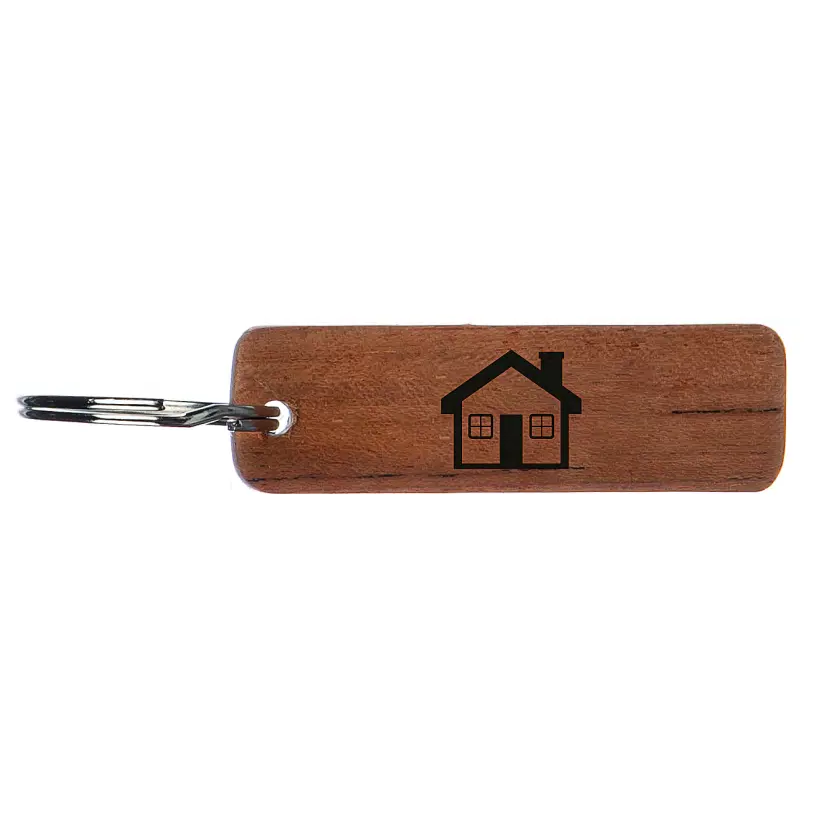 Hyggelig nøglering med sommerhusmotiv – perfekt til sommerhusets nøgler eller til at tage med og give en stemning af skov og ro. En lille, praktisk og smuk gave til naturelskeren. Størrelse ca. 7 × 2 cm.