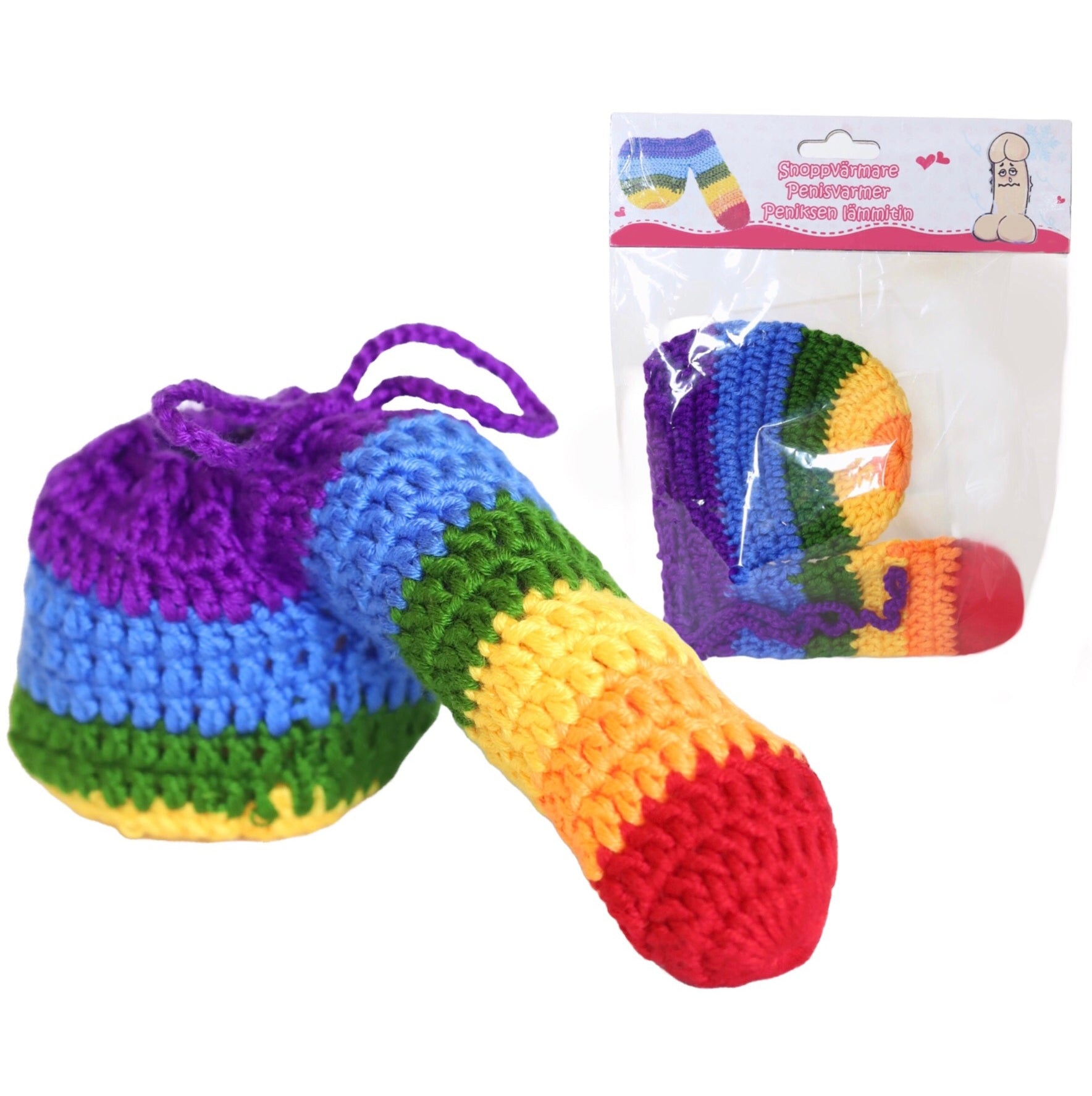 Penisvarmer i regnbuens farver – blød, elastisk og skånsom mod huden. Holder både varmen og humøret højt med det farvemættede regnbuemønster. Perfekt som humoristisk gave eller til kølige aftener.