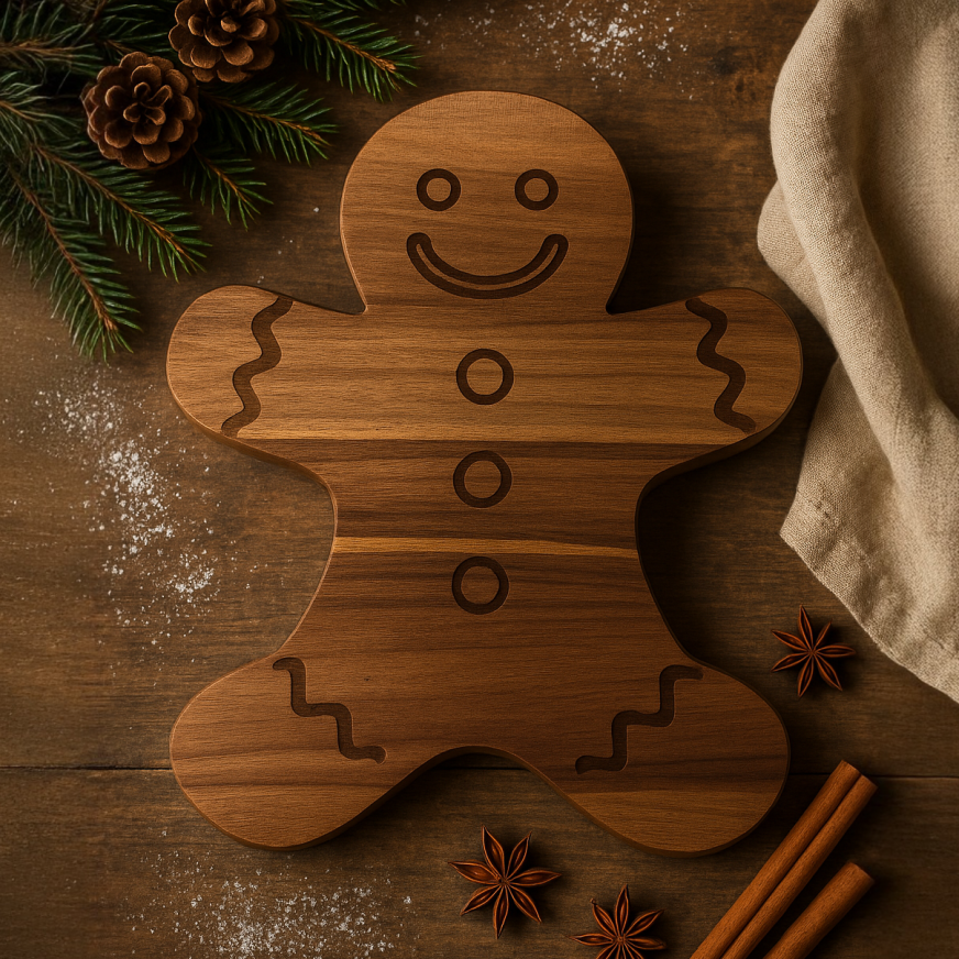 Et skærebræt af akacietræ, formet som en charmerende peberkagemand. Perfekt til servering eller som en dekorativ detalje i køkkenet. Mål: ca. 30 x 25 x 1,5 cm. Leveres i gaveæske.