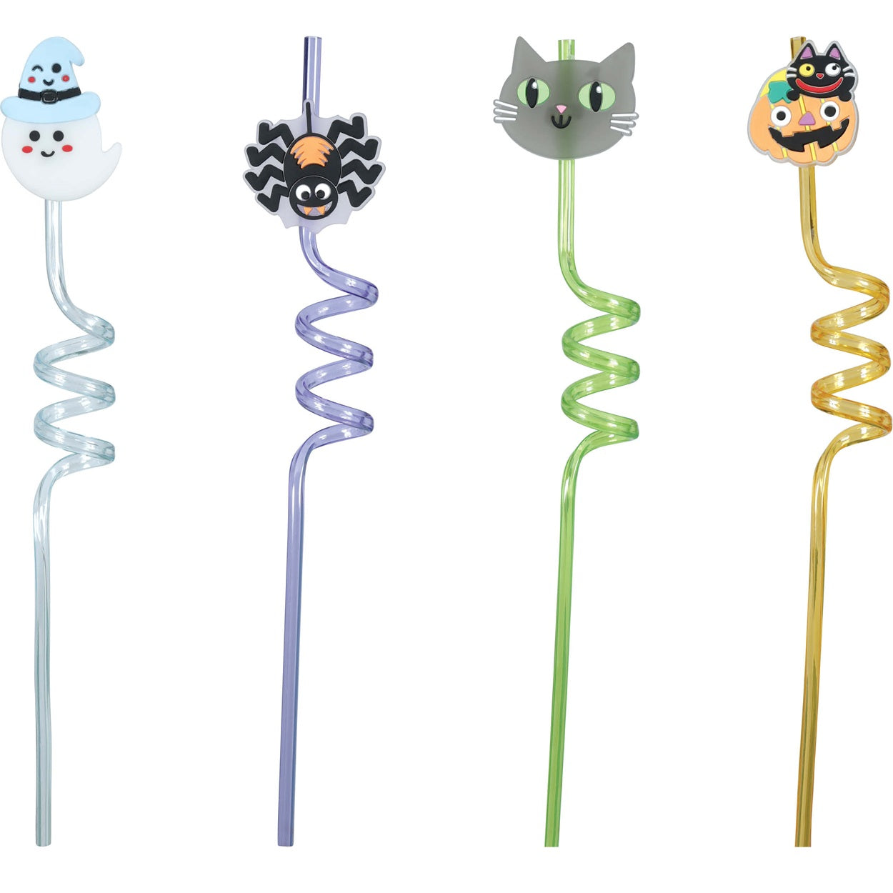 Gør halloween-festen komplet med disse stemningsfulde sugerør! Hver pakke indeholder fire sugerør (ca. 27 cm lange) med festlige motiver – et spøgelse, et græskar, en edderkop og en kat.
