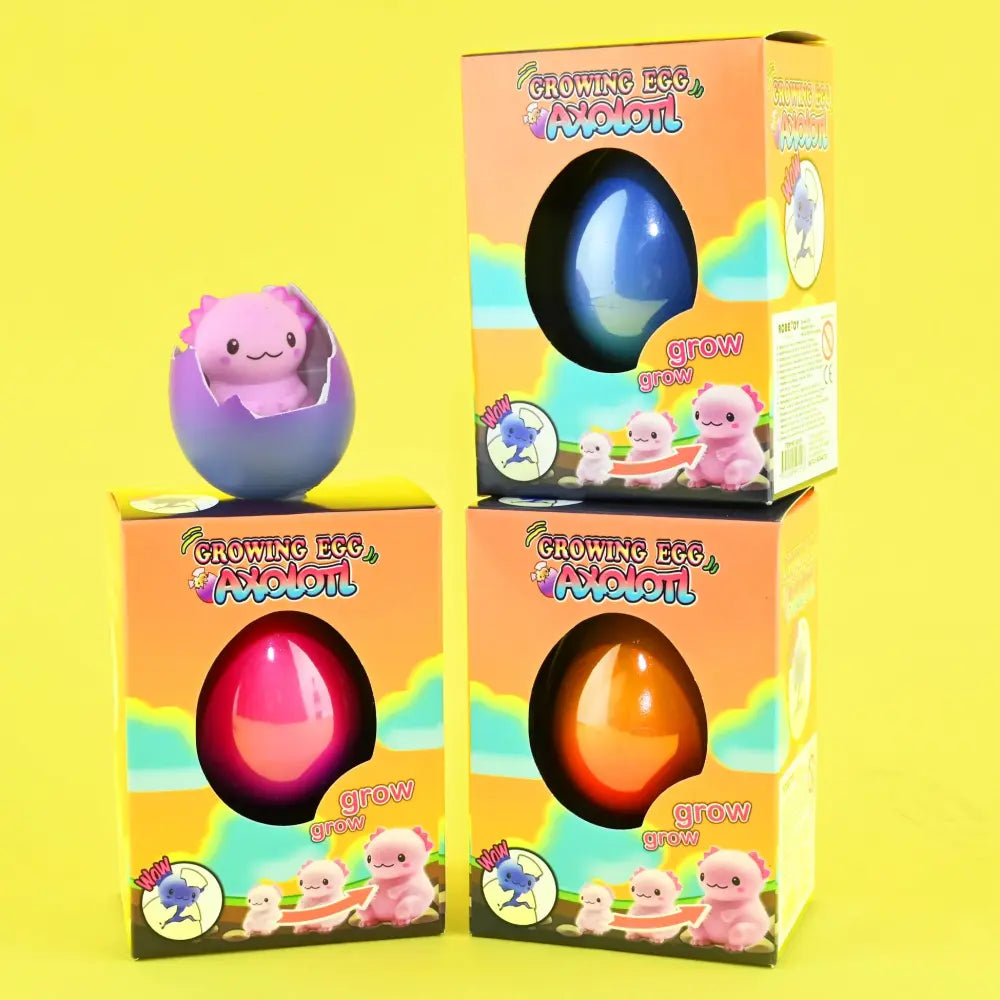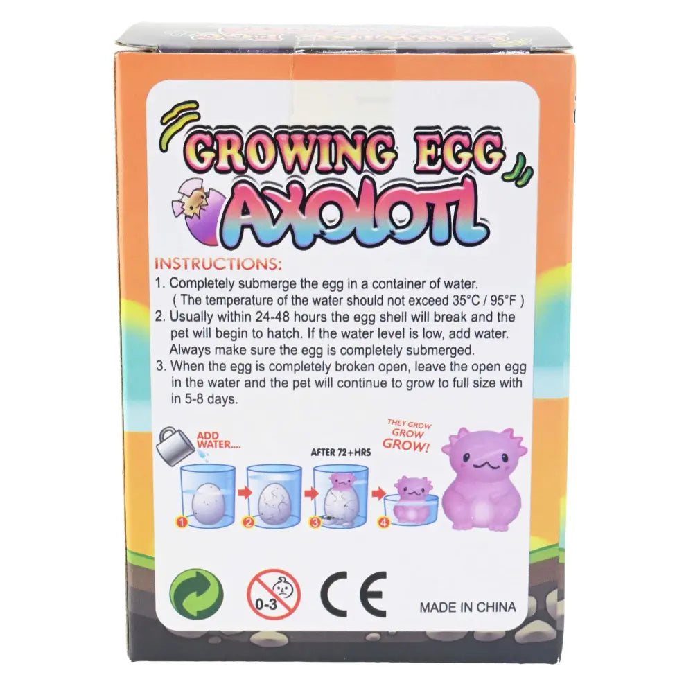 Læg ægget i vand og vent ca. 24–48 timer, indtil ægget klækkes. Efter ca. 72 timer er ægget helt klækket, og axolotlen kommer frem.